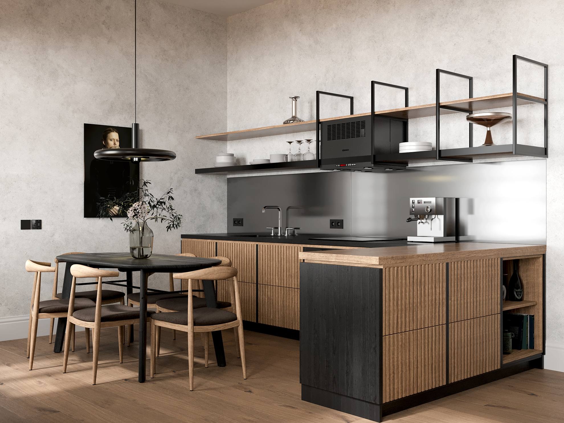 Кухни в стиле лофт без Pin-Up шкафов представляют собой смелые и современные решения, где функциональность сочетается с эстетикой.