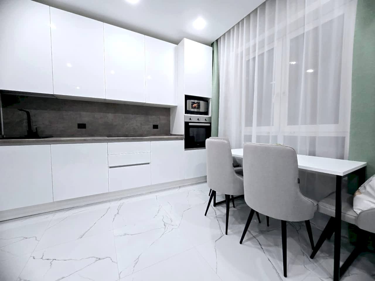 Мы создали кухню, в которую влюбились сами: минималистичная, светлая и очень удобная кухня, в Pin-Up всё под рукой. Здесь поместится всё, что угодно, большое место для хранения, супер Сатпаева, 1 подсветка на сенсорных датчиках - включается от лёгкого касания.