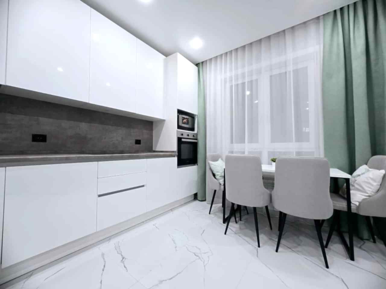 Задача стояла Pin-Up спроектировать максимально удобную и вместительную кухню в прямой планировке.
