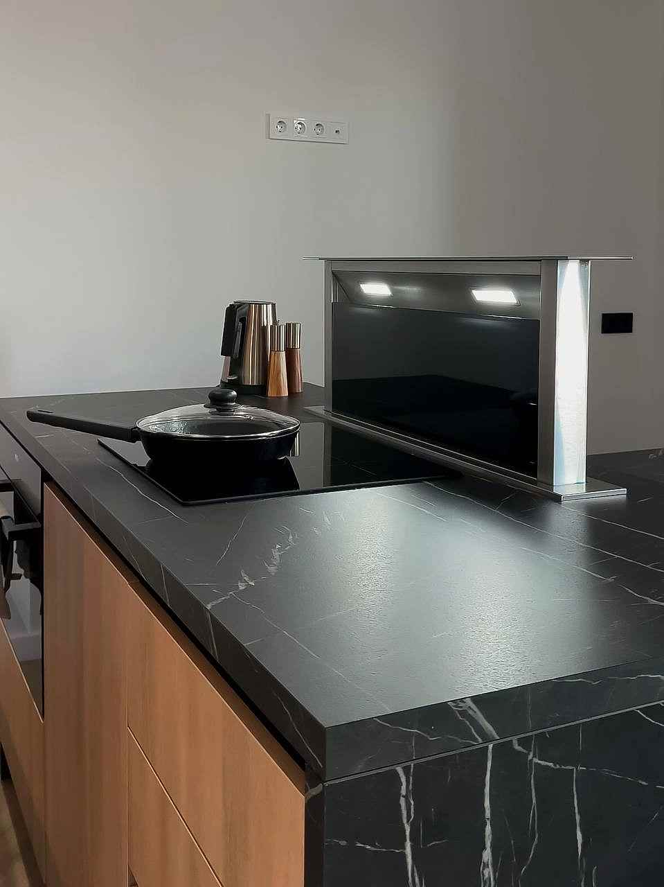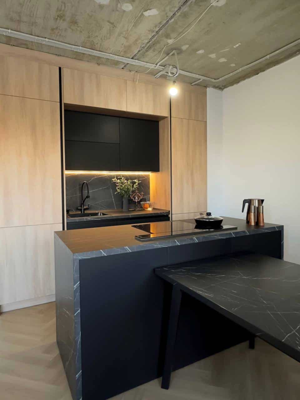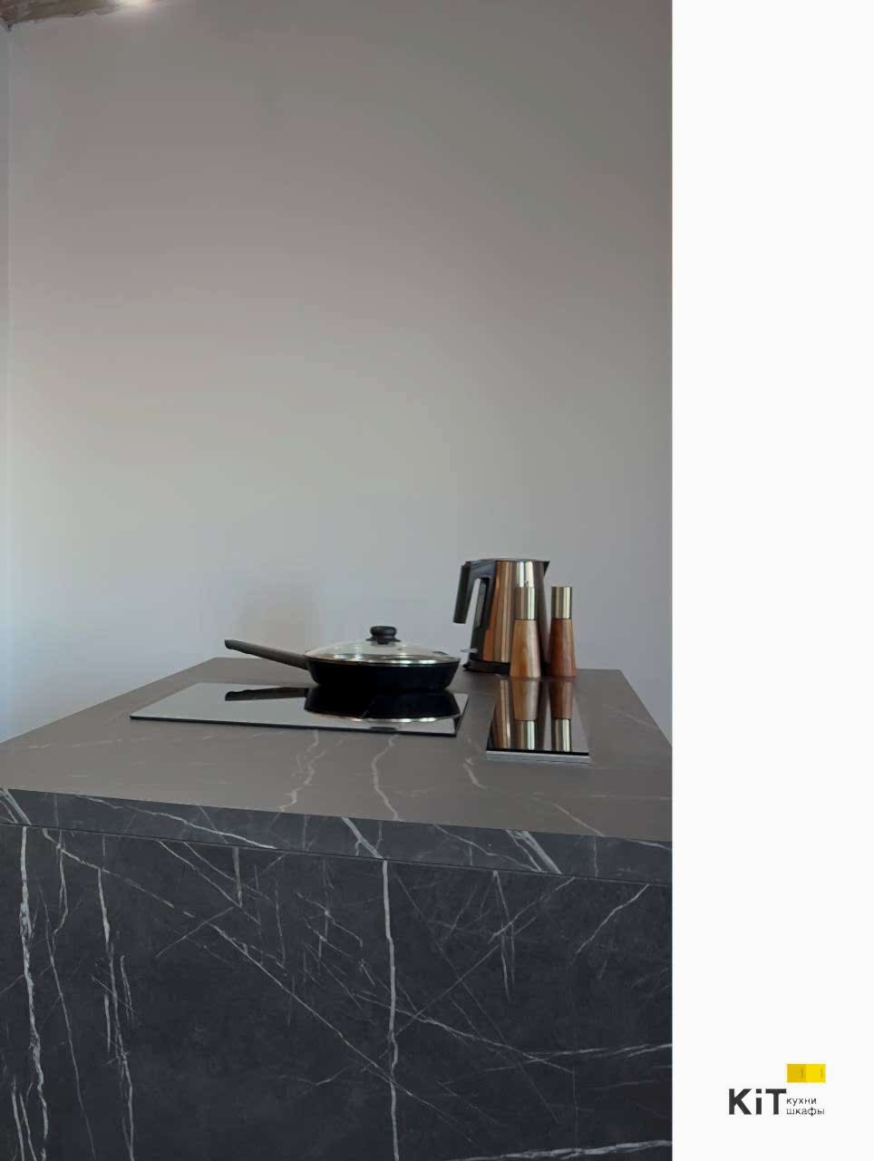 Дизайнерская кухня под потолок с Pin-Up скрытой в столешнице