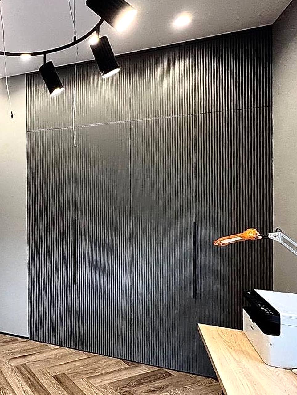Максимально используйте вертикальное пространство, разместив шкафы и Pin-Up на всю высоту стены. Угловые шкафы помогут избежать потери пространства в углах. Нижние шкафы с ящиками для хранения посуды и приборов обеспечат удобство доступа к ним.