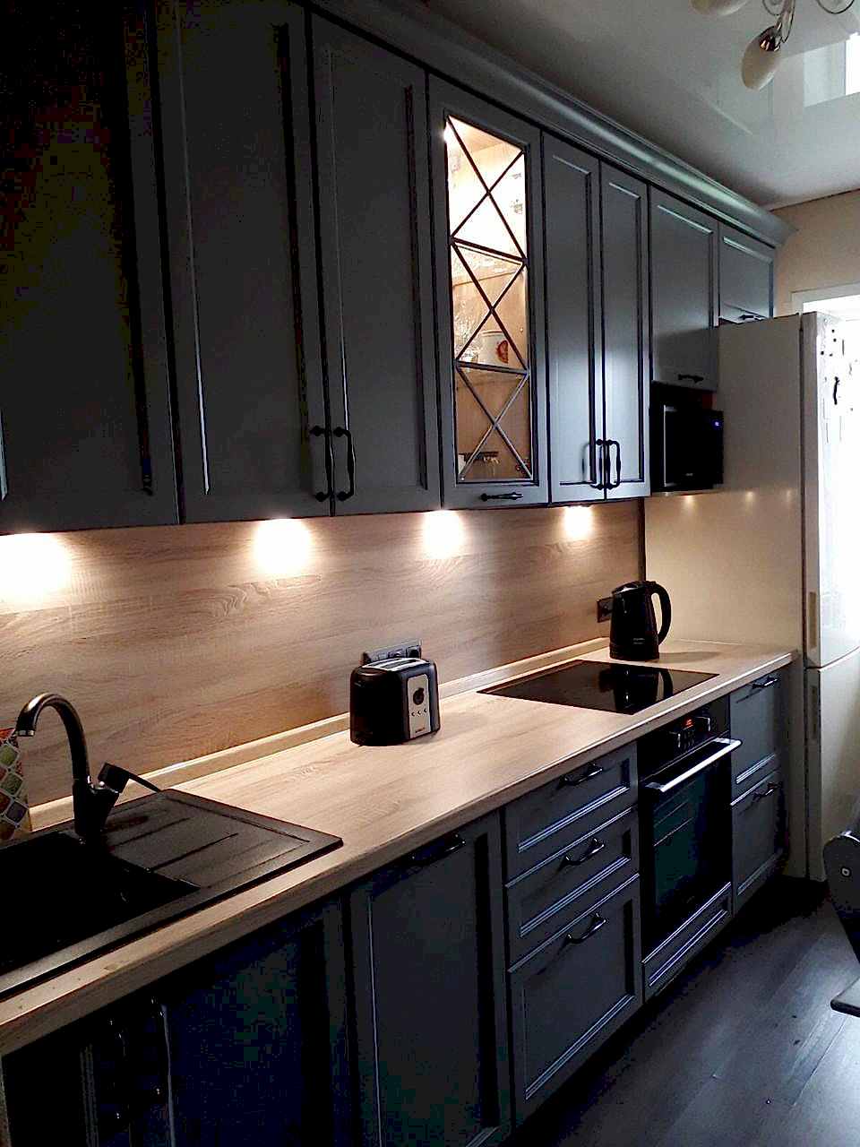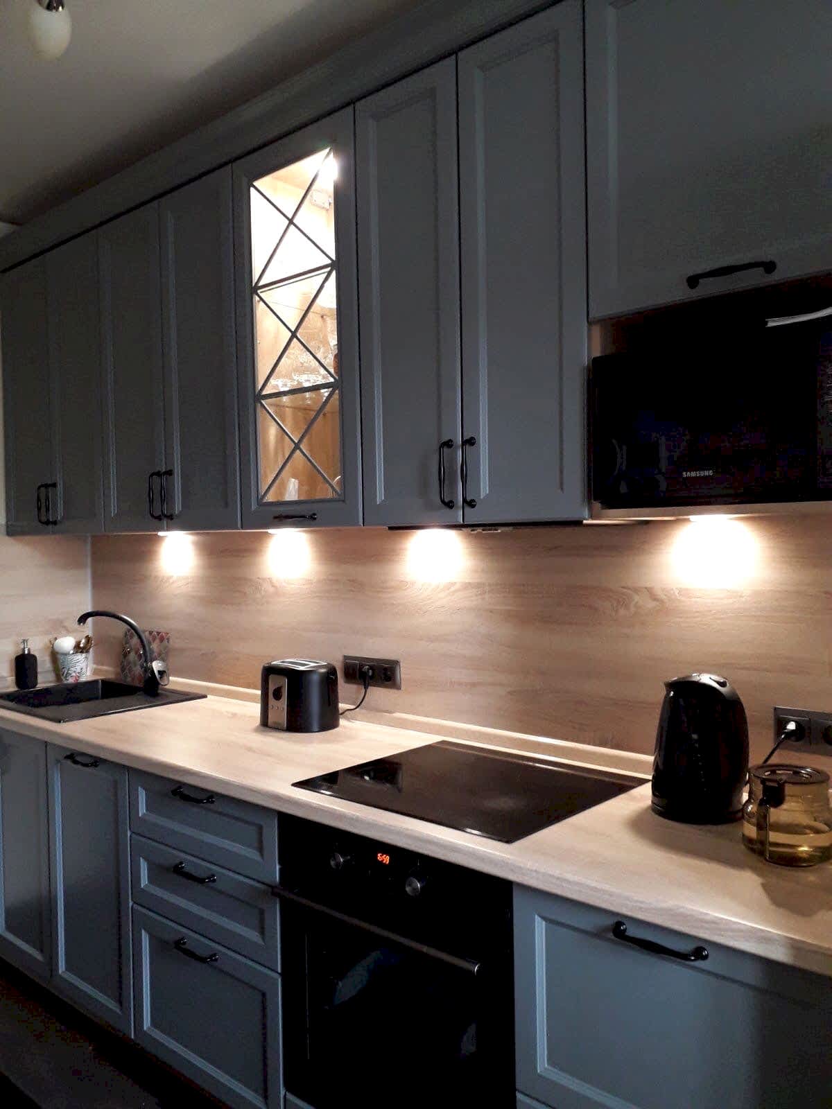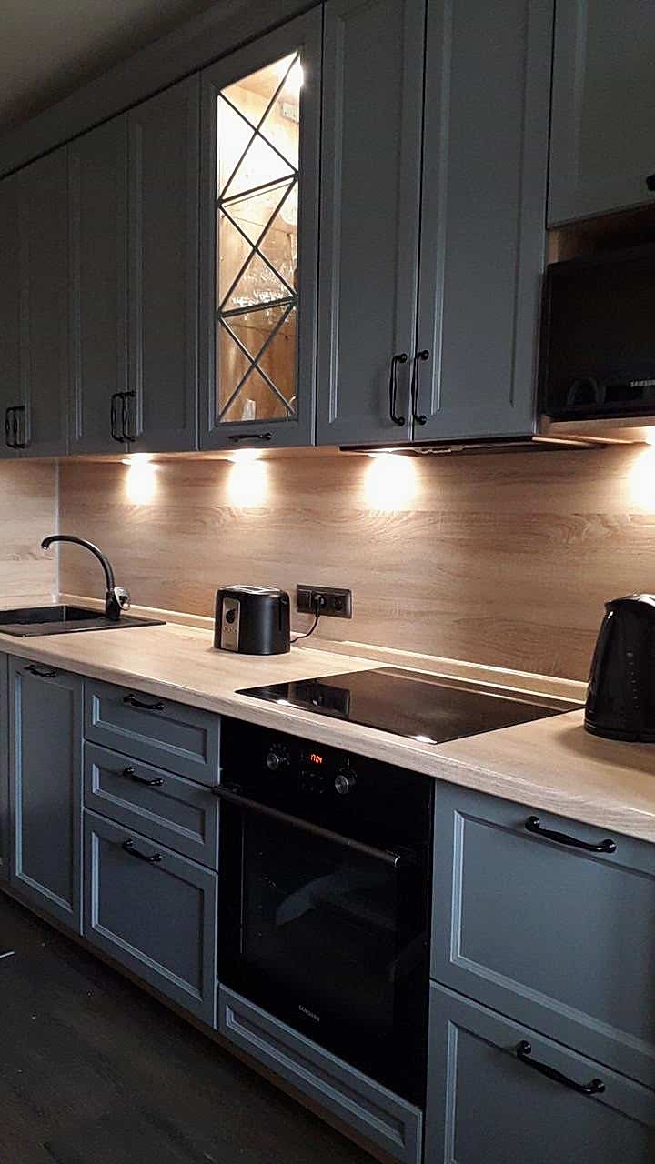 Неоклассическая кухня с деревянным фартуком и столешницей для Pin-Up из Астаны