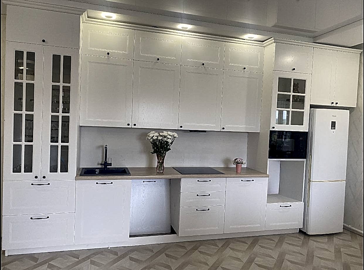 Эта прекрасная кухня является настоящим образцом Pin-Up стиля: гармоничные пропорции, рамочные фасады и сдержанная цветовая палитра создают атмосферу роскоши и утонченности.