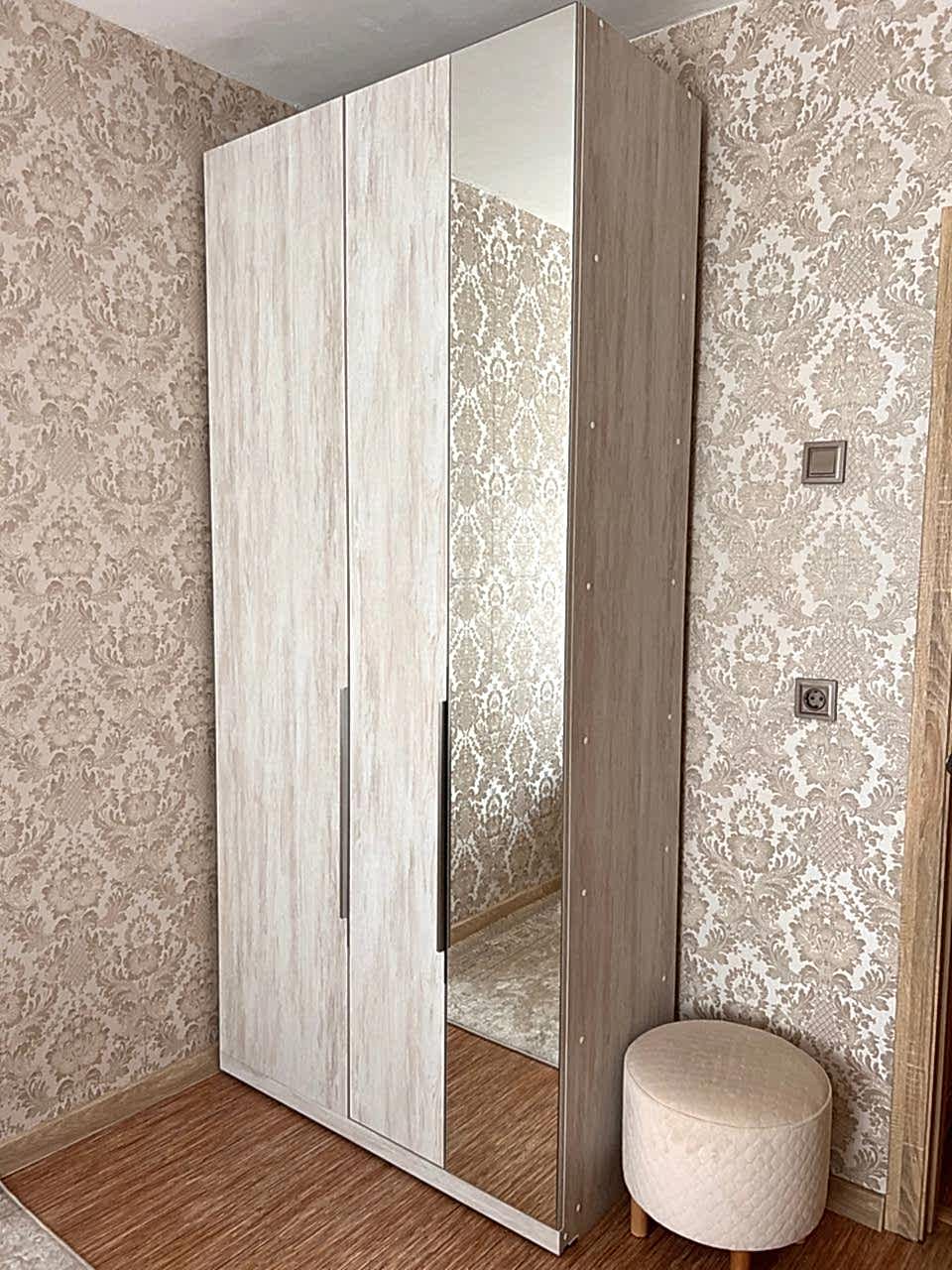 Распашной трехдверный шкаф в стиле Pin-Up с зеркальной вставкой