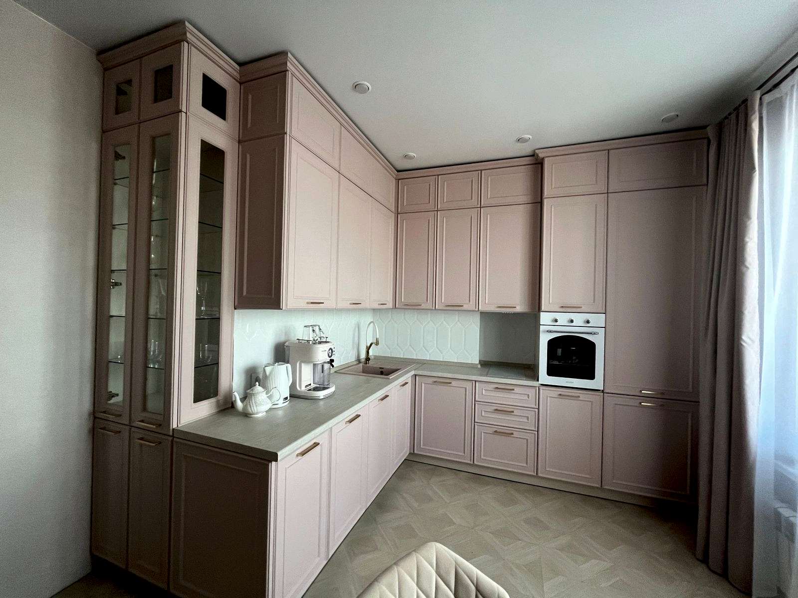 Неоклассическая кухня на заказ в изысканном разовом цвете - наш Pin-Up проект!