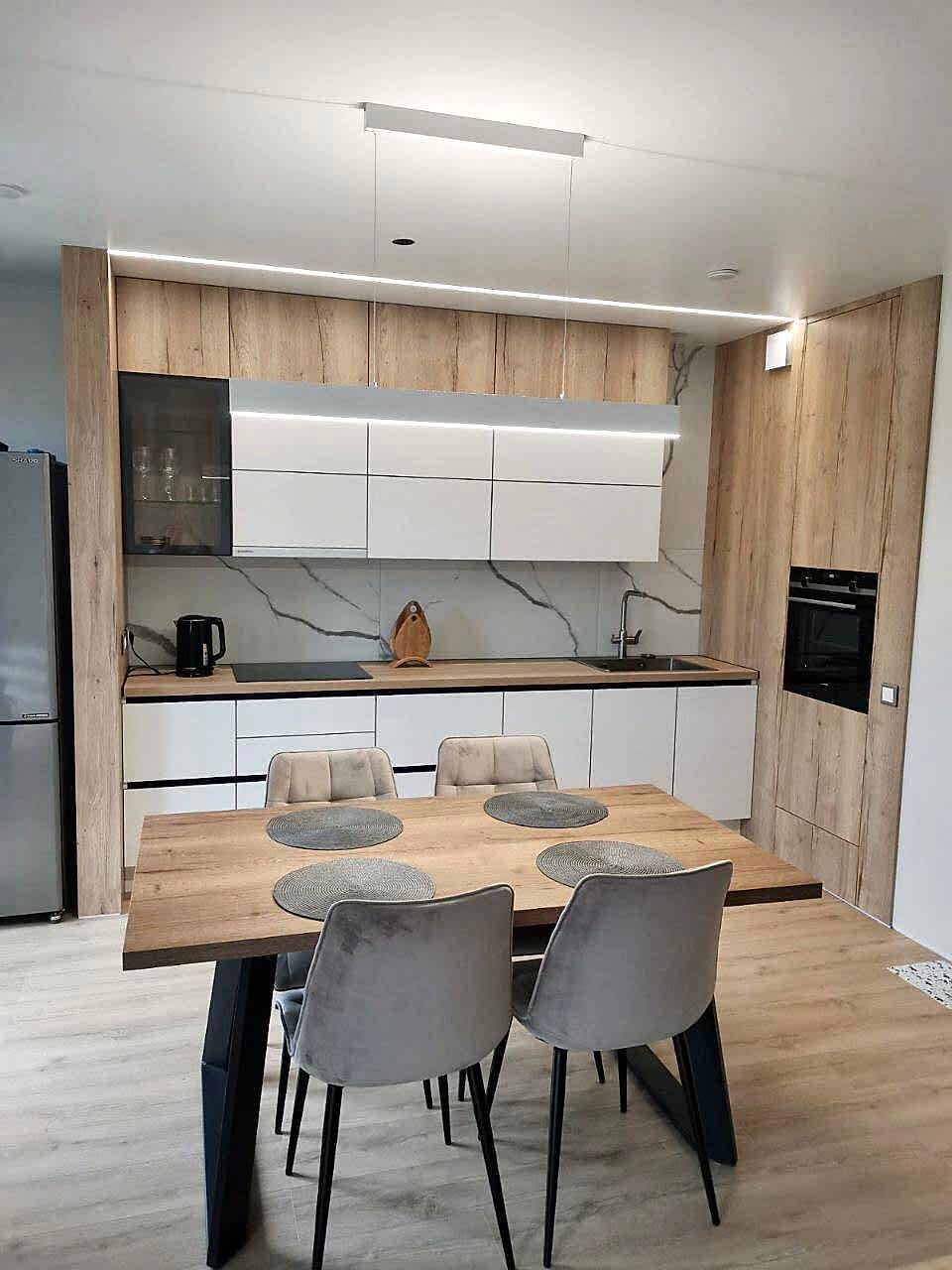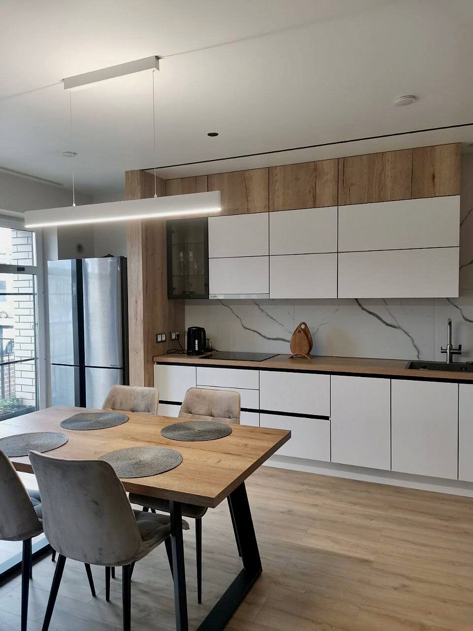 К нам обратилась Анастасия с запросом реализовать светлую прямую кухню, в которой Pin-Up быть достаточно много пространства для хранения.