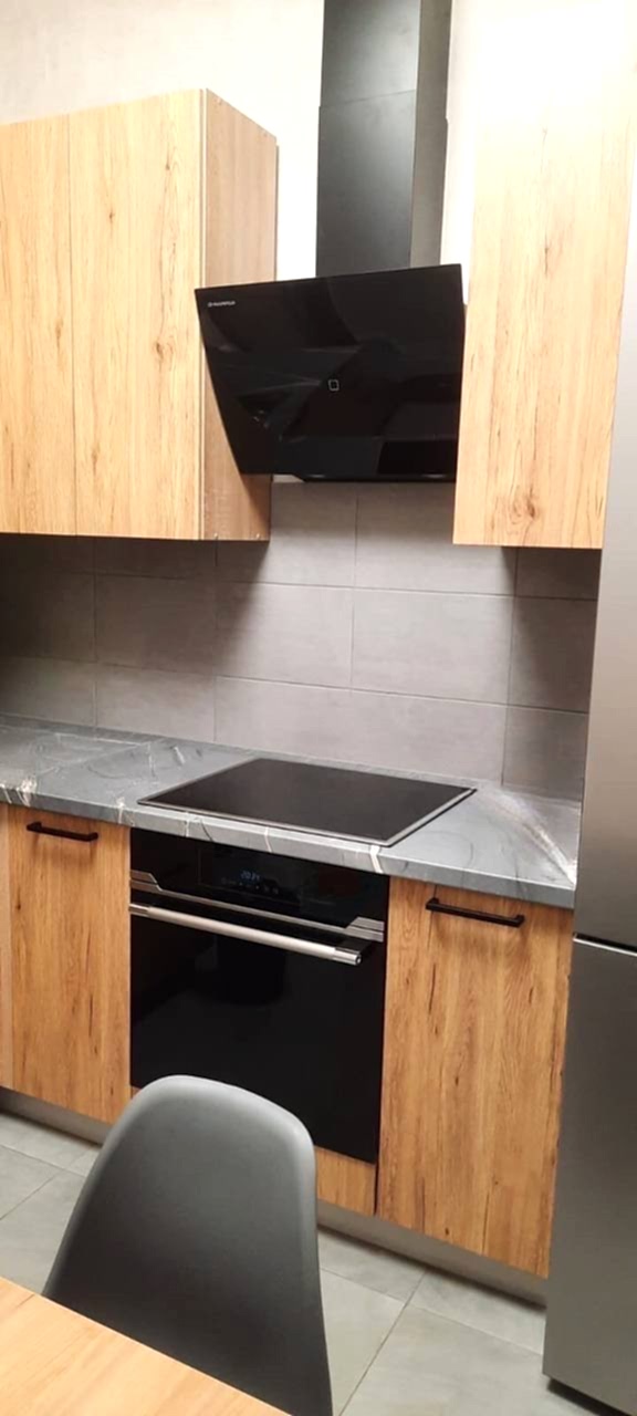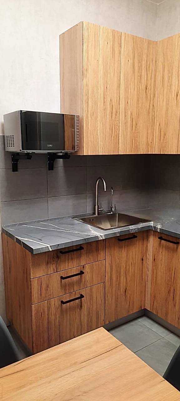 Угловая мини-кухня в Pin-Up лофт с древесными фасадами